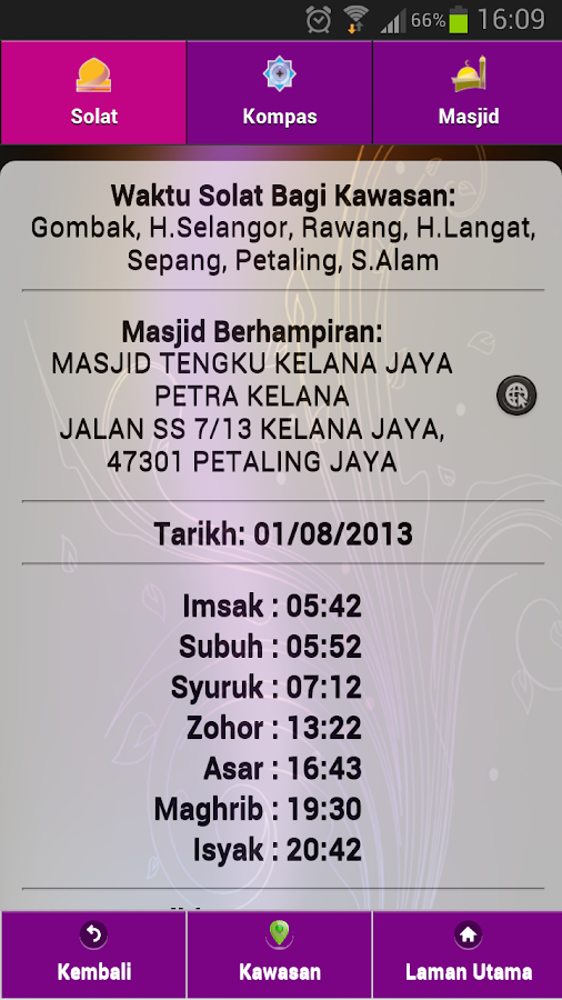 Untuk menu Info Solat ada penambahbaikan maklumat Masjid Berhampiran serta kompas yang agak canggih